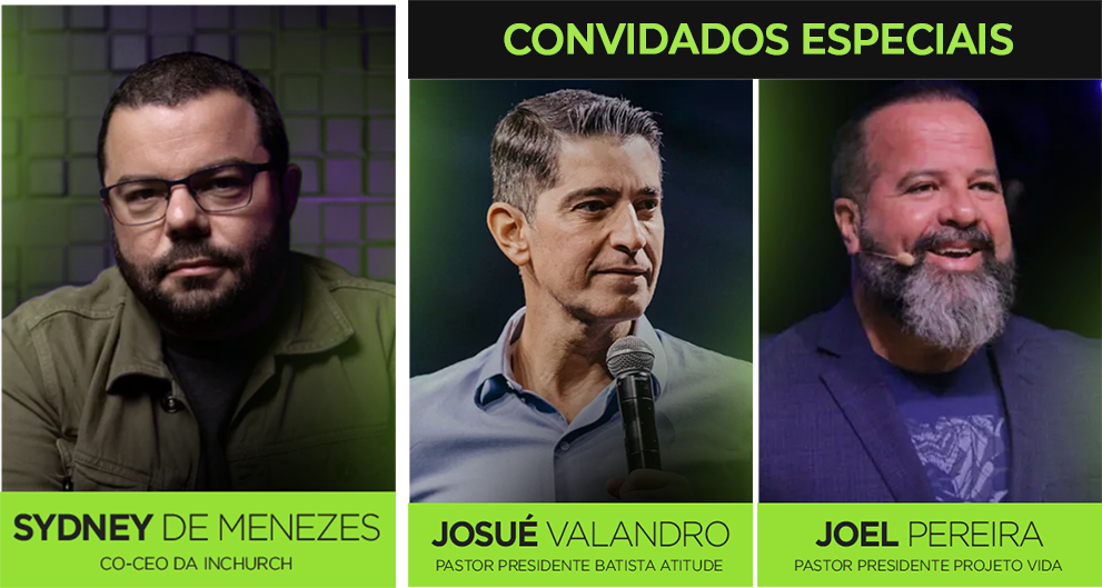 O evento contará com a presença especial do Pastor Josué Valandro (Presidente da Batista Atitude), Apóstolo Joel Pereira (Presidente do Projeto Vida), Sydney de Menezes e Pedro Franco (CO-CEOs da InChurch), além de diversos pastores convidados.